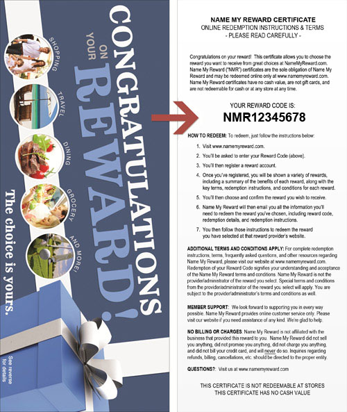 At Name My Reward, our goal is to make sure you that each and every Name My Reward recipient gets the full value from their reward. Redeeming your reward at Name My Reward is a simple three step process. Once you have your Name My Reward reward code, the rest is a breeze! Take a look below to see just how simple this process is. Enjoy!